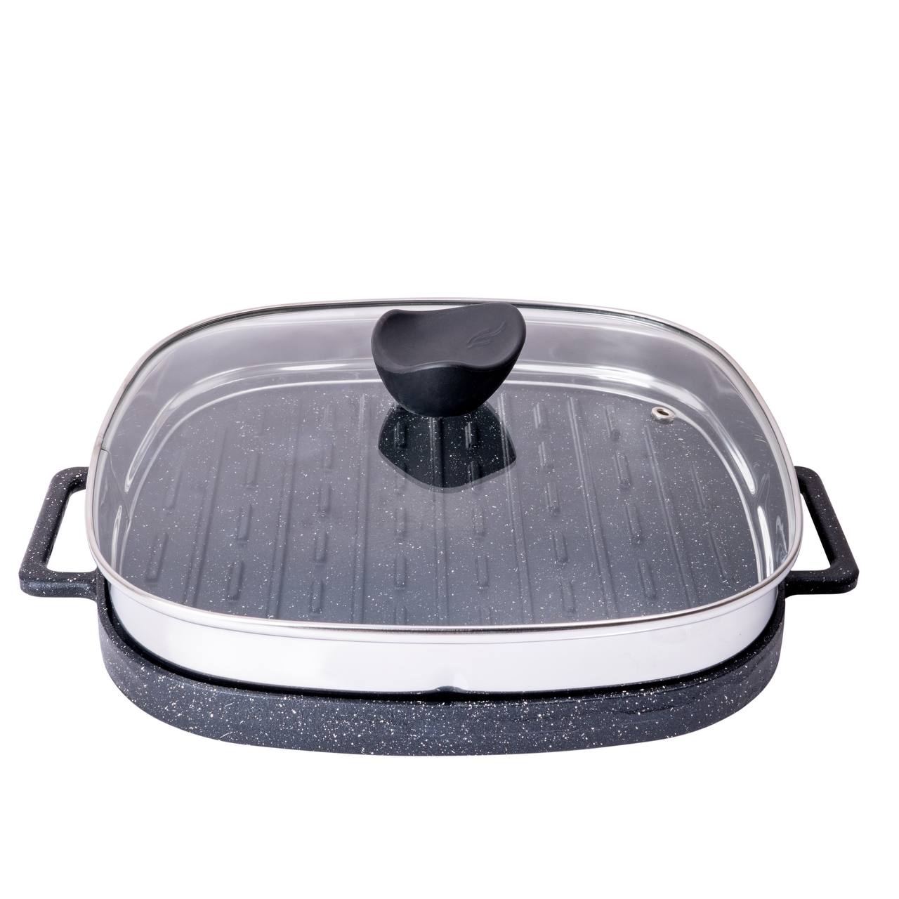 تابه گریل چدنی مربع سایز 28 با درب شیشه ای
